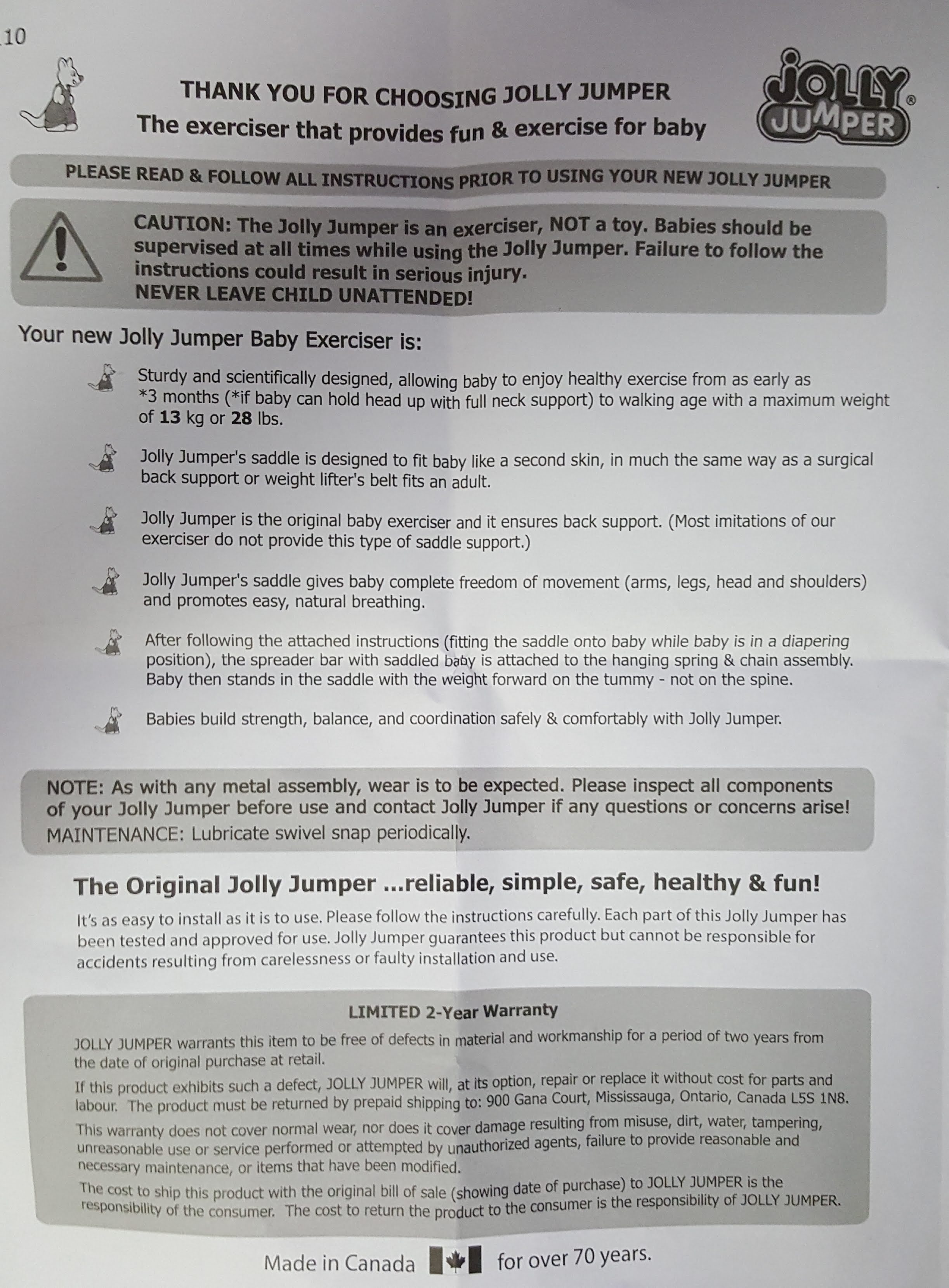 ▷ 졸리점퍼를 탈 때 아이를 혼자두지 말 것!