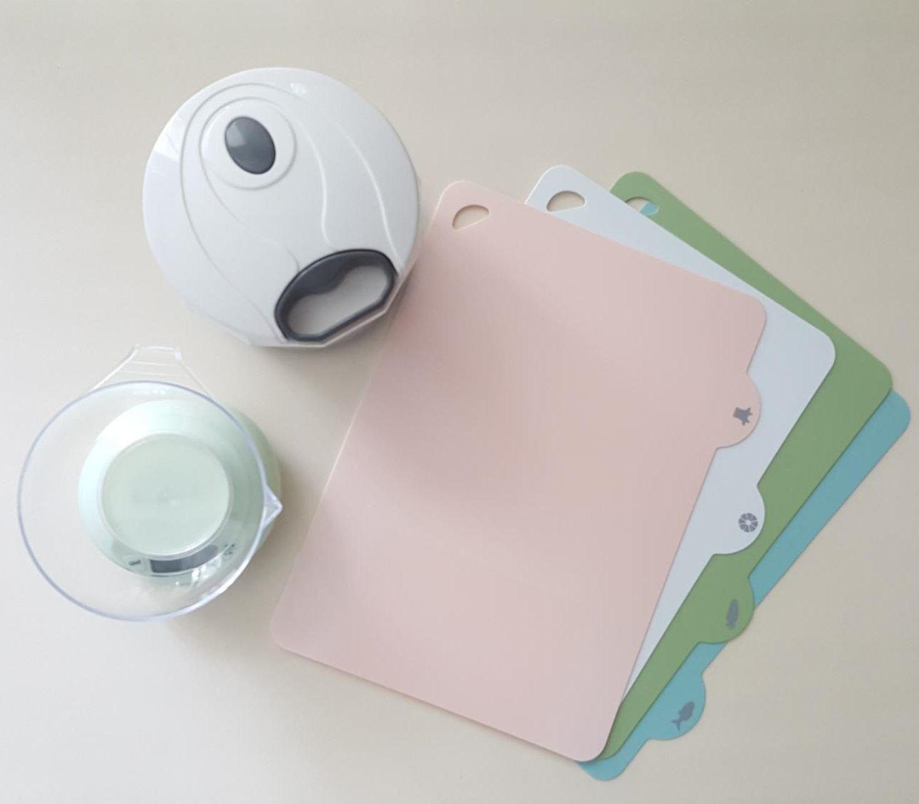 거름망, 강판 같은 주방조리도구나 턱받이 등 사은품을 받거나 기존에 있던 것을 쓰면서