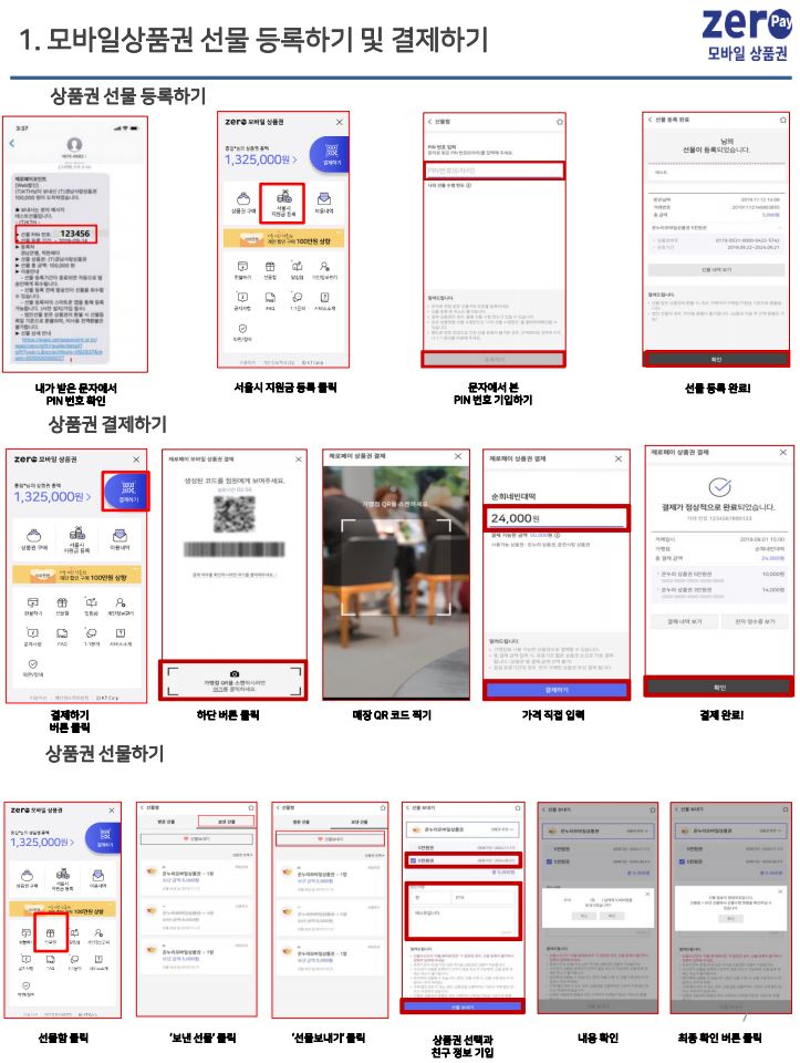 아동돌봄쿠폰/제로페이/서울사랑상품권 사용방법 비교