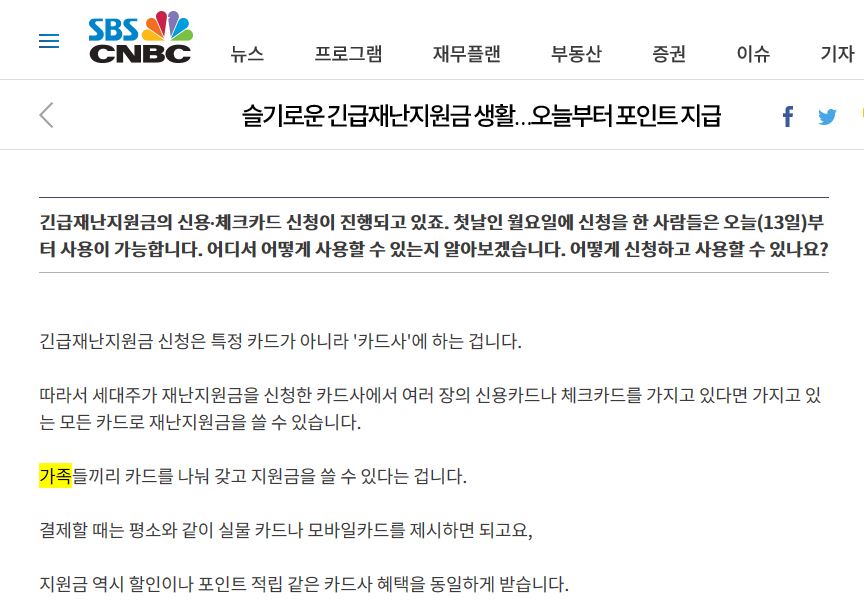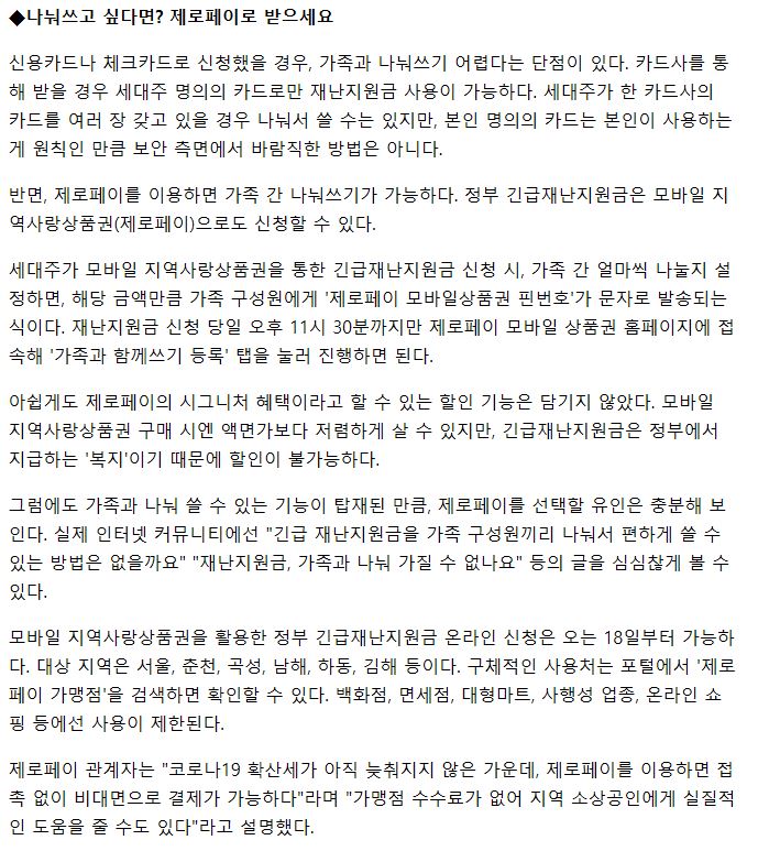 고객님은 정부 긴급재난지원금을 “가족과 함께쓰기”로 신청하셨습니다.